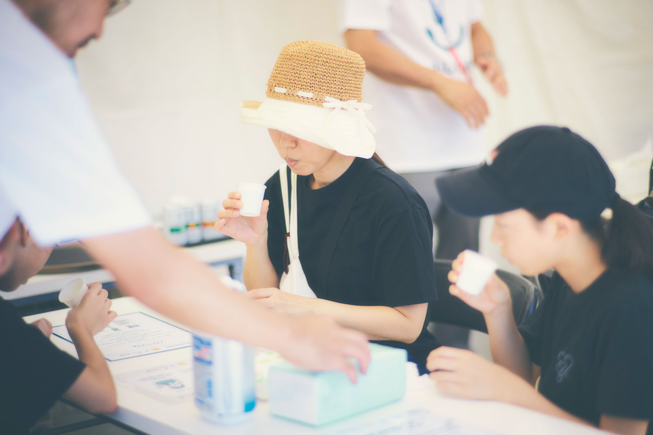 「もしもCafé」では、災害時のオーラルケアの重要性や、液体ハミガキの使用方法などに加え、2011年より継続して発信している『防災にオーラルケア』の啓発情報をお伝えしました。また、防災備蓄として5年間の長期保存ができる「長期保存用 ガム・デンタルリンス」や野菜飲料で初めて日本災害食認証を取得した「健康道場 緑黄野菜」などをご紹介しました。当日は総勢約700名の方が「もしもCafé」を体験され、「液体ハミガキの備蓄は手軽なので試してみたい」「災害時のオーラルケアについて知ることができて良かった」などのお声をいただきました。